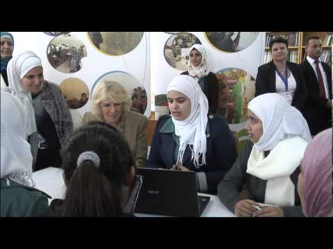 The Duchess of Cornwall and Queen Rania visit Mahis Secondary School for...